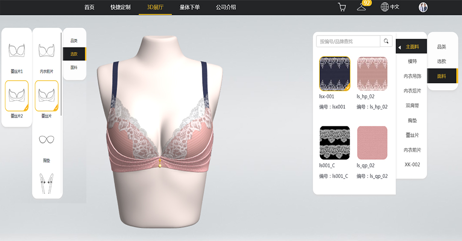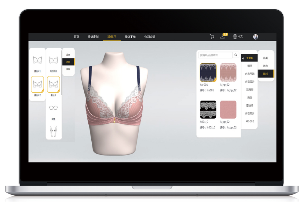 面向內(nèi)衣定制轉(zhuǎn)型研發(fā),幫助內(nèi)衣個(gè)業(yè)實(shí)現(xiàn)訂單數(shù)字化、設(shè)計(jì)網(wǎng)絡(luò)化、生產(chǎn)智能化。相對(duì)于傳統(tǒng)的互聯(lián)網(wǎng)商城,博克內(nèi)衣服裝接單系統(tǒng)可以帶來顛覆性的商業(yè)模服裝商家不需要先生產(chǎn)再銷售,而是式先銷售后生產(chǎn)既支持批量訂單,也支持個(gè)性化單體訂單: 既支持標(biāo)準(zhǔn)號(hào)下單,也支持量體下單和改尺寸下單。用戶可以誦過3D虛擬網(wǎng)絡(luò)系統(tǒng)參與產(chǎn)品設(shè)計(jì),實(shí)時(shí)看到選擇不同款式、部件和面料所產(chǎn)生的成衣效果,甚至可以自主設(shè)置繡字、圖案等個(gè)性化設(shè)計(jì)。強(qiáng)大的企業(yè)后臺(tái)支持訂單管理,財(cái)務(wù)管理,產(chǎn)品管理以及客戶管理等功能,并能與企業(yè)ERP、財(cái)務(wù)系統(tǒng)、庫(kù)存系統(tǒng)、生產(chǎn)系統(tǒng)以及物流系統(tǒng)等做對(duì)接集成,是內(nèi)衣服裝企業(yè)實(shí)現(xiàn)C2B轉(zhuǎn)型的強(qiáng)大武器。